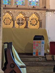 Our advent window and Christmas community events including Panto, Christingle, Disco, Elfridges, Winter warmer and FOSPS Bazaar