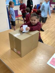 School Council organised and held a whole school vote for a charity to support following a visit from an MP to learn more about voting.
