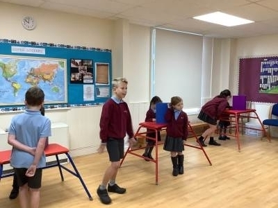 Y5 and 6 went to Burford school. Y5 took part in DT, cooking, making and stitching activities, while Y6 worked with tools to create a Parthenon linked to their current Greek topic.
