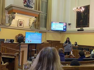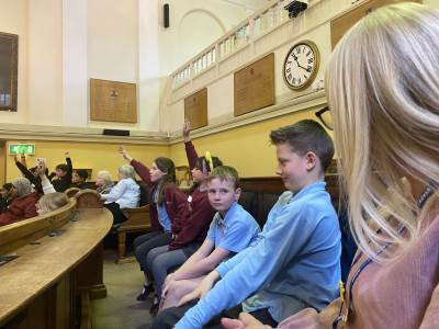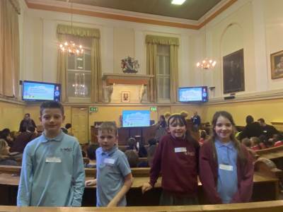 4 school councillors shared their thoughts on the future of children in Oxfordshire with other pupils and County Councillors and County hall.