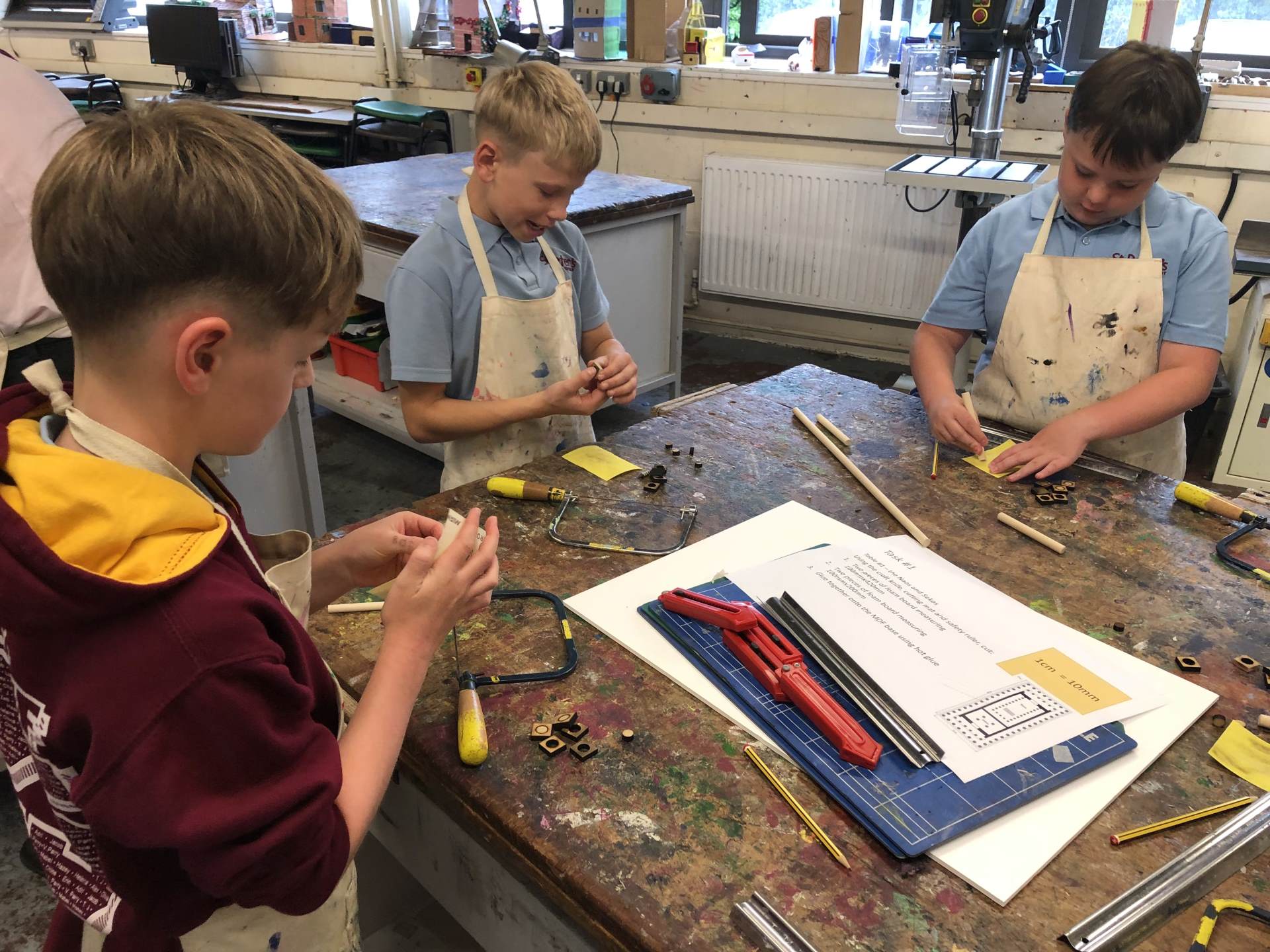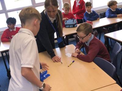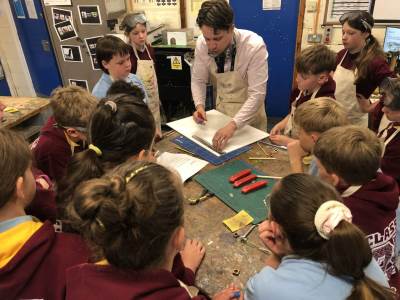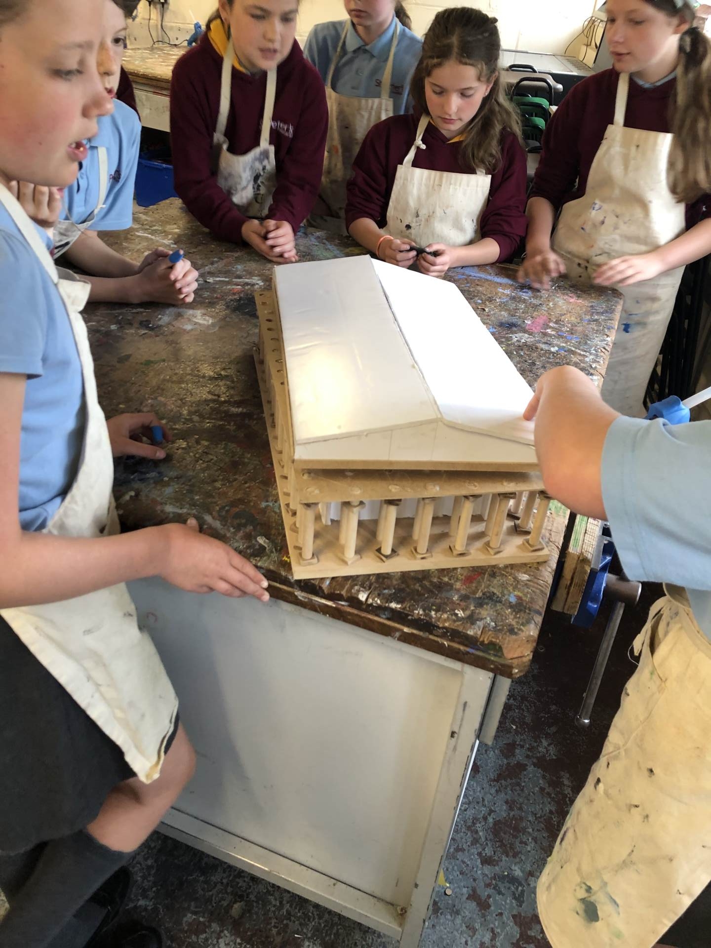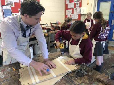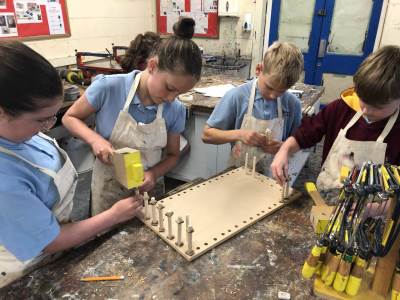 Y5 and 6 went to Burford school. Y5 took part in DT, cooking, making and stitching activities, while Y6 worked with tools to create a Parthenon linked to their current Greek topic.