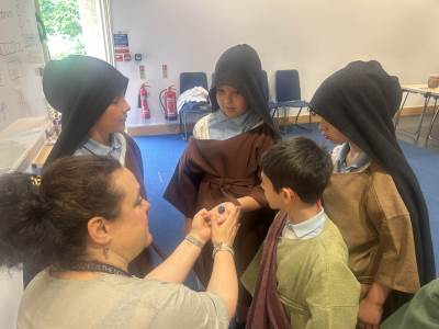 Y5 and 6 went to Burford school. Y5 took part in DT, cooking, making and stitching activities, while Y6 worked with tools to create a Parthenon linked to their current Greek topic.